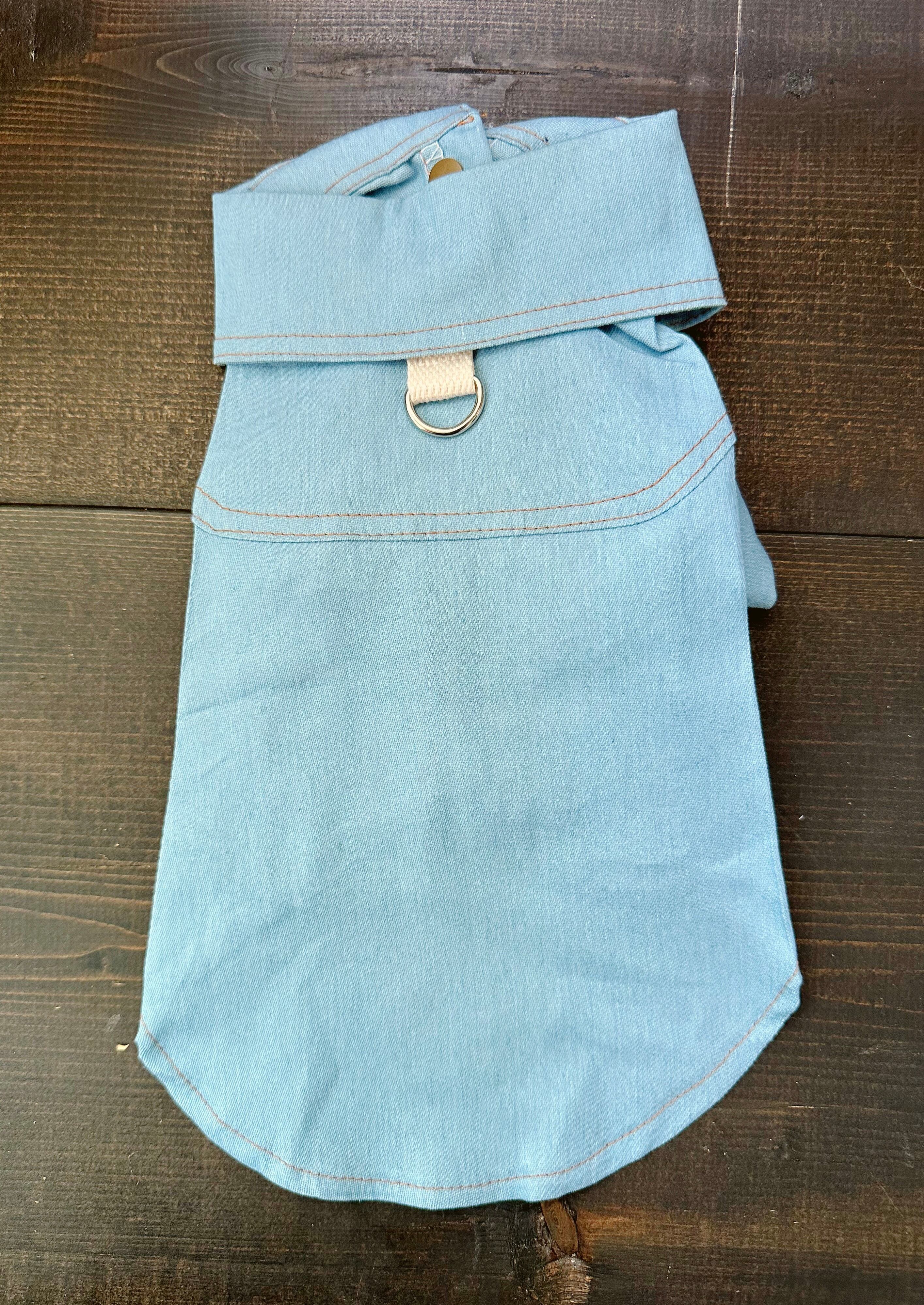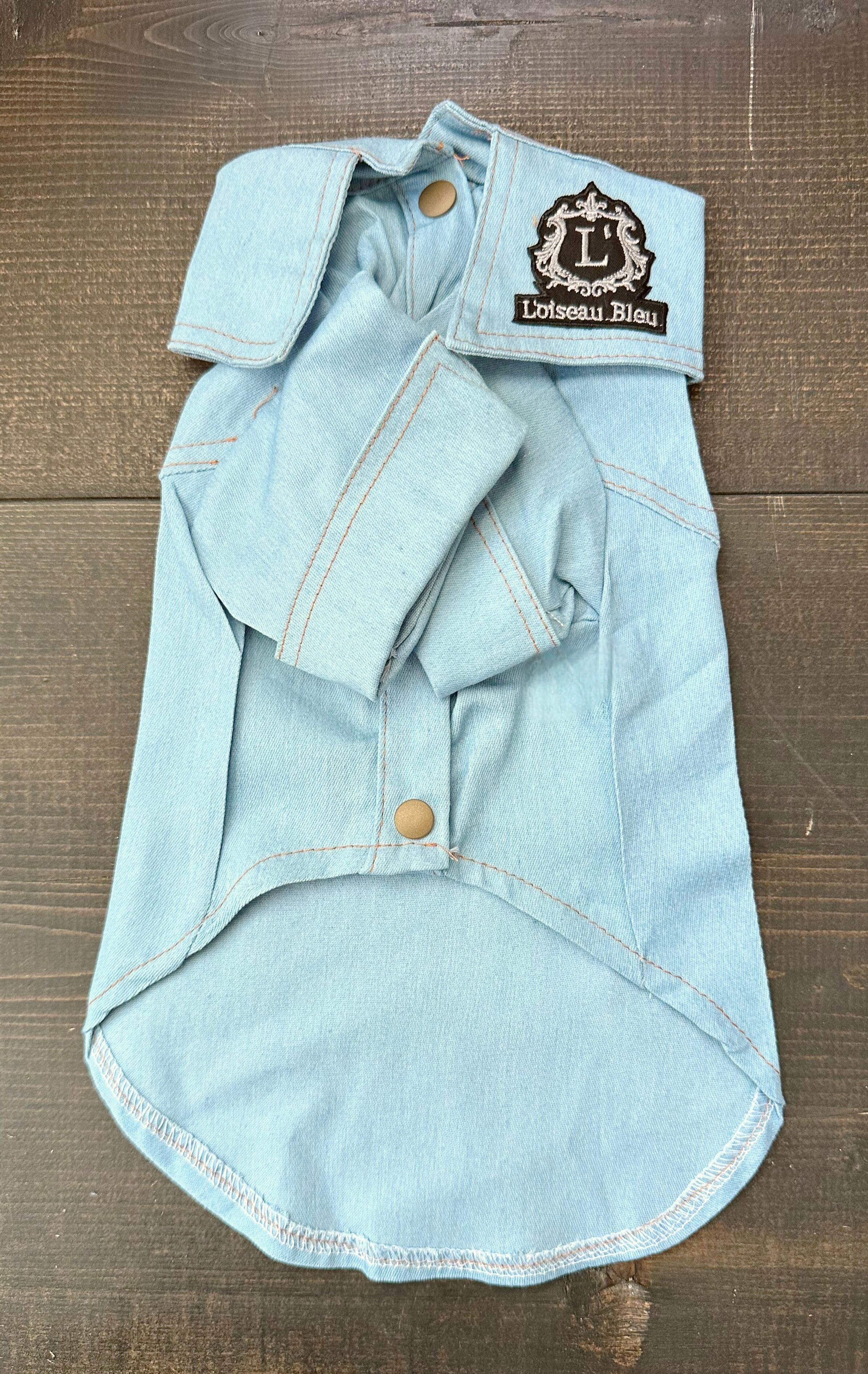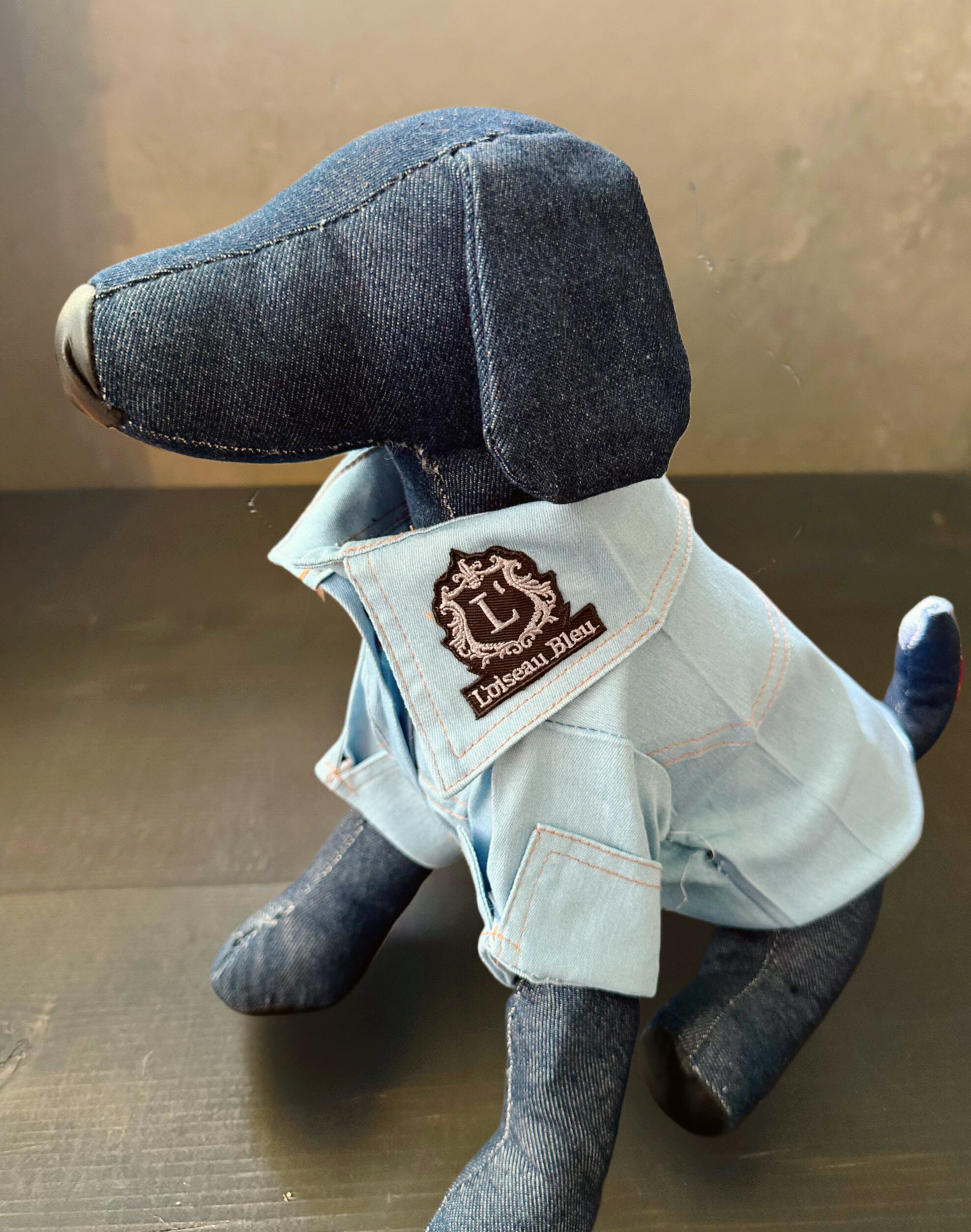 襟のロゴが印象的で薄いデニム生地ですので着心地も動きやすさも抜群でこれからの時期にオススメです。